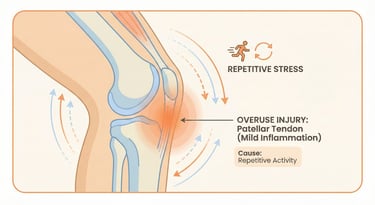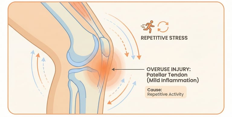 Pain around or behind the kneecap is common in younger individuals and athletes. It often worsens while climbing stairs or sitting for long periods.