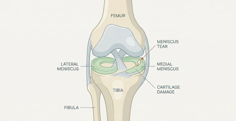 The meniscus is a cartilage that cushions the knee joint. Tears can occur during sports or even during routine movements in older adults.